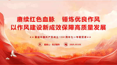 “七一”精品党课《赓续红色血脉,锤炼优良作风,以作风建设新成效保障高质量发展》(PPT+文字稿).pptx