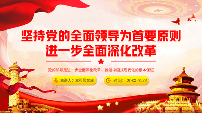 二十届三中全会宣讲PPT+讲稿:坚持党的全面领导为首要原则,进一步全面深化改革.pptx