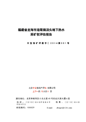 福建省龙海市港尾镇汤头地下热水采矿权评估报告.docx