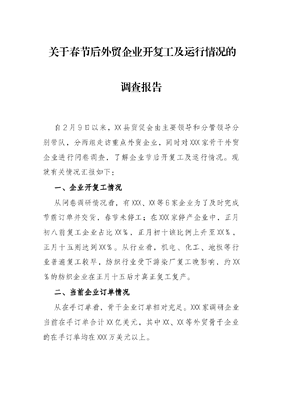 关于春节后外贸企业开复工及运行情况的调查报告.docx