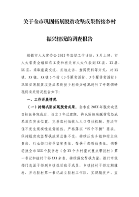 关于全市巩固拓展脱贫攻坚成果衔接乡村振兴情况的调查报告.docx