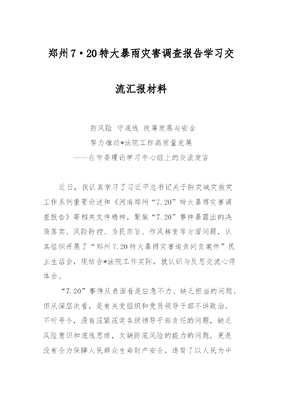郑州7·20特大暴雨灾害调查报告学习交流汇报材料.docx