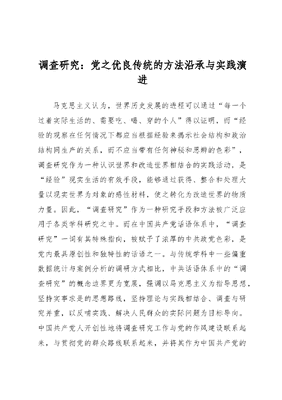 调查研究:党之优良传统的方法沿承与实践演进.docx