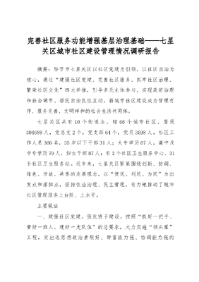 完善社区服务功能增强基层治理基础——七星关区城市社区建设管理情况调研报告.docx