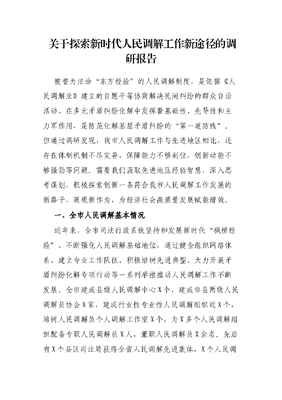 关于探索新时代人民调解工作新途径的调研报告.docx