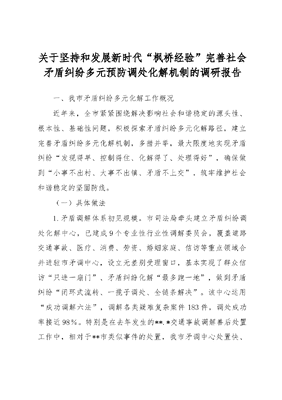 关于坚持和发展新时代“枫桥经验”完善社会矛盾纠纷多元预防调处化解机制的调研报告.docx