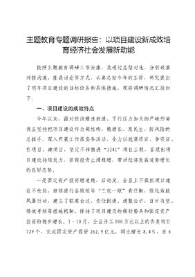 主题教育专题调研报告:以项目建设新成效培育经济社会发展新动能.docx