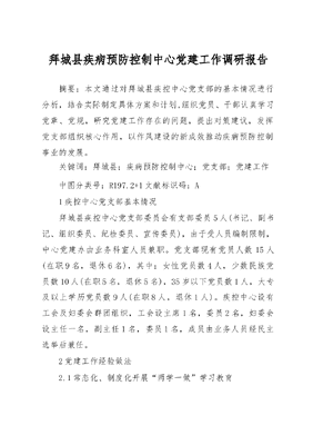拜城县疾病预防控制中心党建工作调研报告_王建国.docx