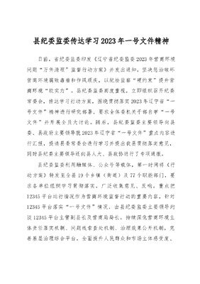 县纪委监委传达学习2023年省纪委一号文件精神.docx