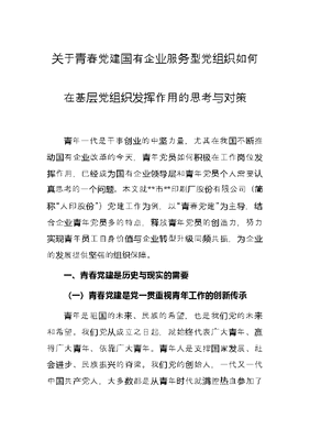 关于青春党建国有企业服务型党组织如何在基层党组织发挥作用的思考与对策.docx