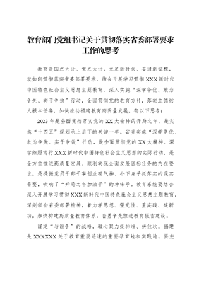 教育部门党组书记关于贯彻落实省委部署要求工作的思考.docx