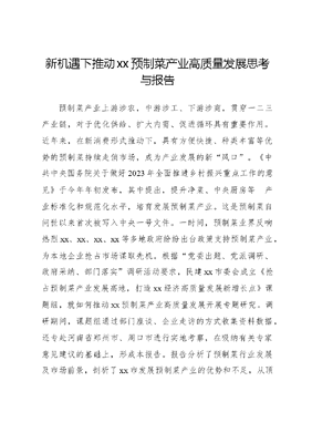 新机遇下推动xx预制菜产业高质量发展思考与报告.docx
