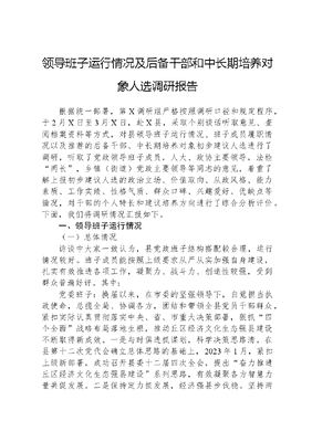 领导班子运行情况及后备干部和中长期培养对象人选调研报告.docx