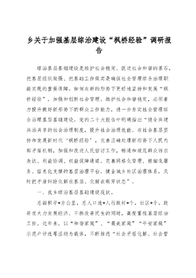 乡关于加强基层综治建设“枫桥经验”调研报告.docx