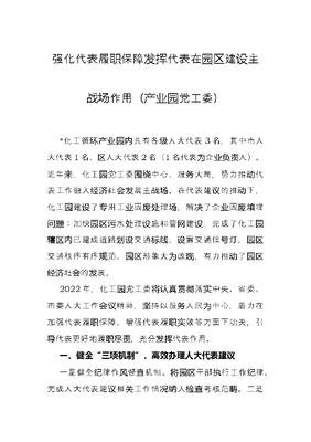 强化代表履职保障发挥代表在园区建设主战场作用产业园党工委.docx