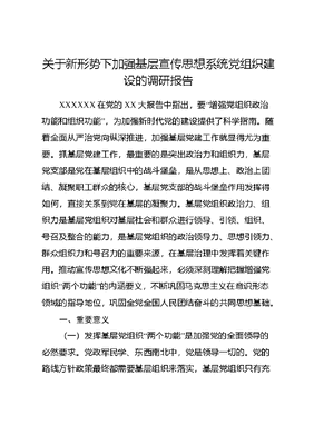 关于新形势下加强基层宣传思想系统党组织建设的调研报告.docx