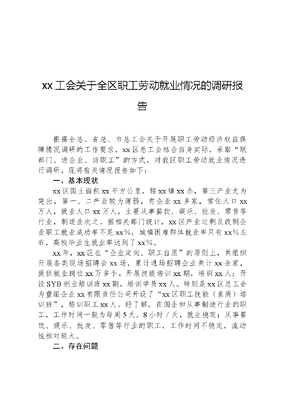 xx工会关于全区职工劳动就业情况的调研报告.docx