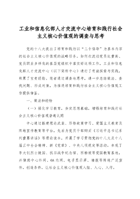 工业和信息化部人才交流中心培育和践行社会主义核心价值观的调查与思考.docx