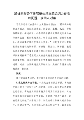 浅析新形势下基层单位党支部组织力存在的问题、成因及对策.docx