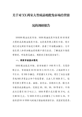 关于对XX两家大型成品粮批发市场经营情况的调研报告.docx