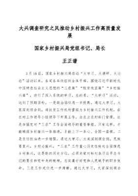 王正谱:大兴调查研究之风+推动乡村振兴工作高质量发展.docx