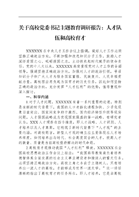 关于高校党委书记主题教育调研报告:人才队伍和高校育才.docx