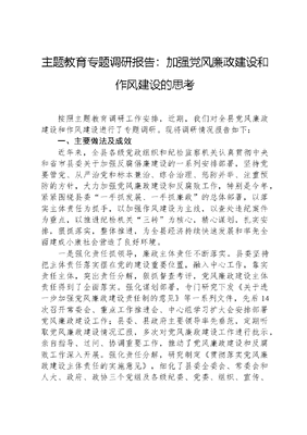主题教育专题调研报告:加强党风廉政建设和作风建设的思考.docx