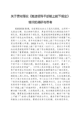 关于贯彻落实《推进领导干部能上能下规定》情况的调研与思考.docx