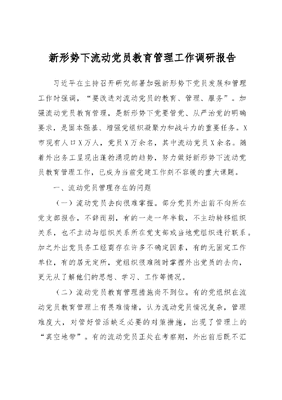 【总结汇报】新形势下流动党员教育管理工作调研报告.docx