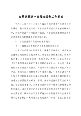 自然资源资产负债表编制工作探索.docx