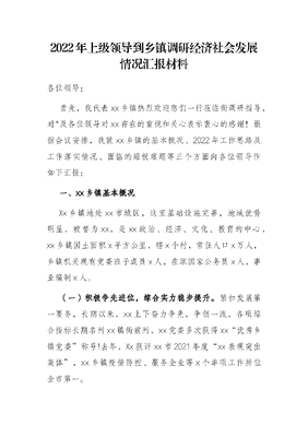 2022年上级领导到乡镇调研经济社会发展情况汇报材料.docx