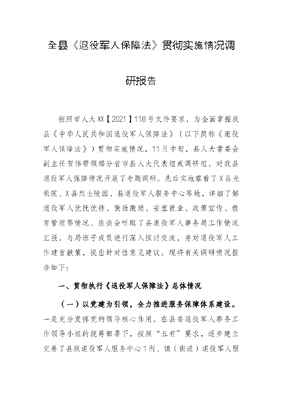 全县《退役军人保障法》贯彻实施情况调研报告.docx