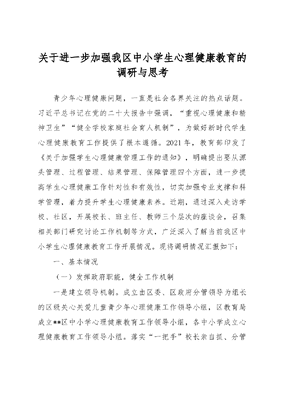 关于进一步加强我区中小学生心理健康教育的调研与思考.docx