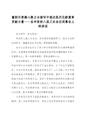 履职尽责凝心聚力为谱写中国式现代化新篇章贡献力量.docx