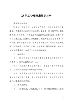 XX职工心理健康服务材料.doc