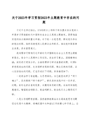 关于2023年学习贯彻2023年主题教育中存在的问题.docx