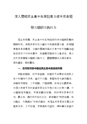 深入贯彻民主集中制原则着力提升党委领导力组织力执行力.docx