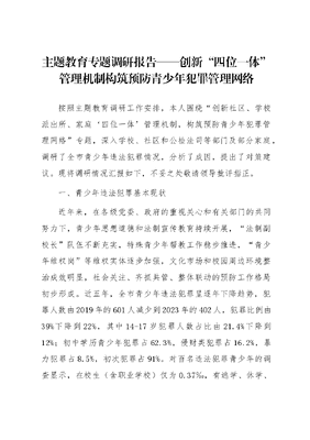 主题教育专题调研报告——创新“四位一体”管理机制构筑预防青少年犯罪管理网络.docx