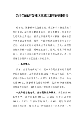 关于当前涉农社区党建工作的调研报告.docx