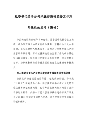 纪委书记关于如何把握好高校监督工作政治属性的思考(高校).docx