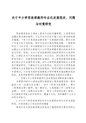 关于中小学思政课教师专业化发展现状、问题与对策研究.docx