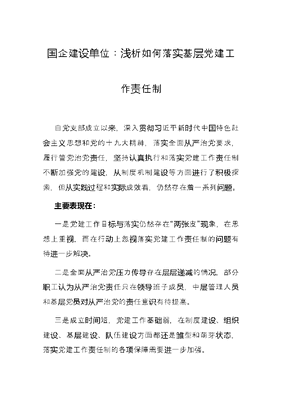 国企建设单位:浅析如何落实基层党建工作责任制.docx