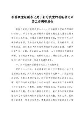 社科联党组副书记关于新时代党的创新理论武装工作调研报告.docx