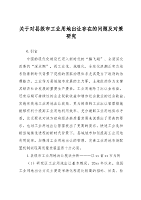关于对县级市工业用地出让存在的问题及对策研究.docx