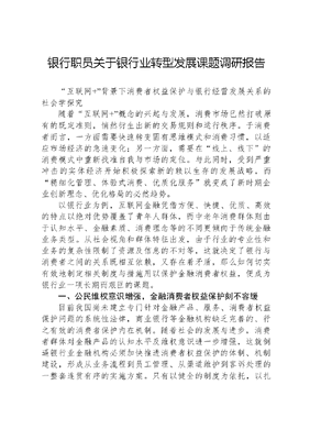银行职员关于银行业转型发展课题调研报告.docx
