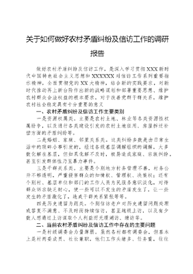 关于如何做好农村矛盾纠纷及信访工作的调研报告.docx