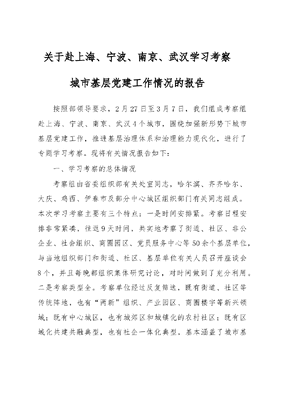 关于赴上海、宁波、南京、武汉学习考察城市基层党建工作情况的报告.doc
