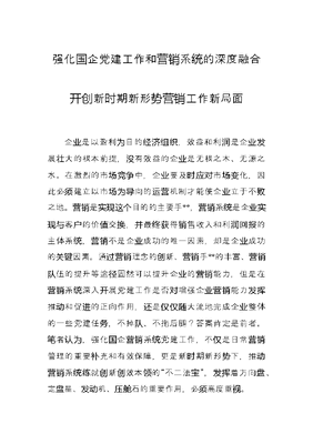 强化国企党建工作和营销系统的深度融合开创新时期新形势营销工作新局面.docx