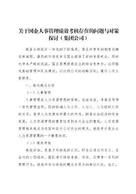 关于国企人事管理绩效考核存在的问题与对策探讨(集团公司).docx