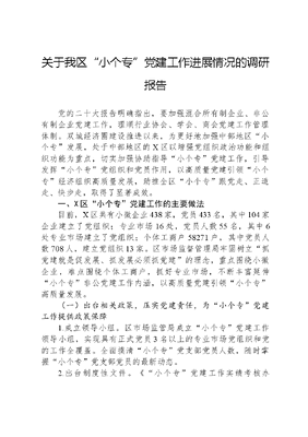 关于我区“小个专”党建工作进展情况的调研报告.docx